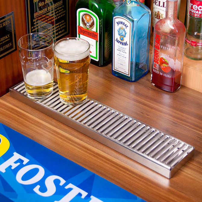 Help keep your bar looking as good as new with this Stainless Steel Long Drip Tray. Ideal for placement on back bars or when serving beverages, this drip tray will collect spills to prevent marks and stains on your bar top.