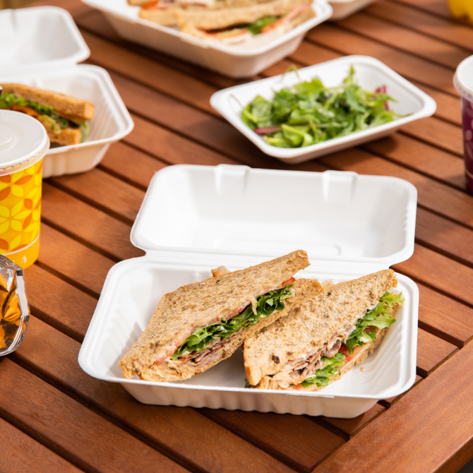 Made from compostable & biodegradable 100% sugarcane fibre, these Bagasse Lunch Boxes are perfect for serving hot wet and oily takeaway foods.