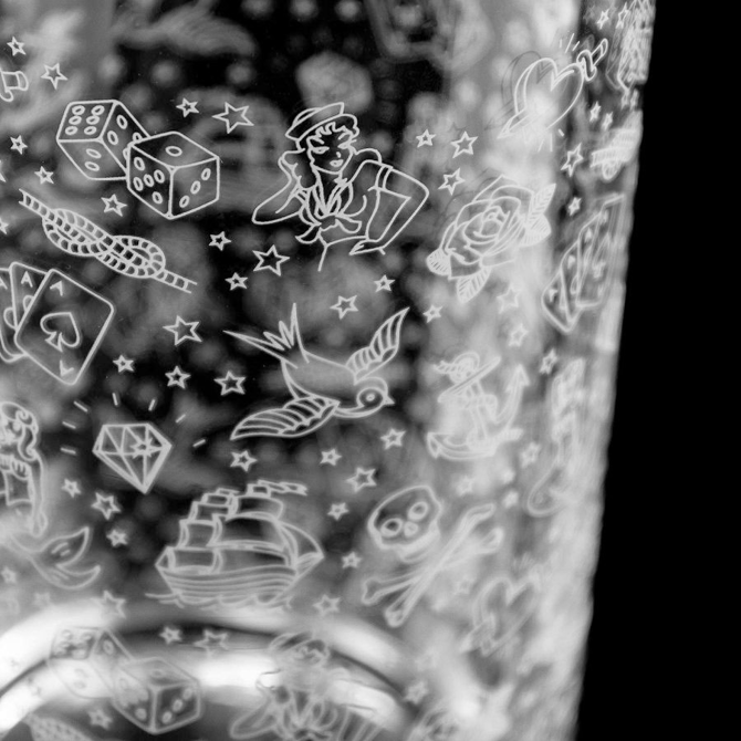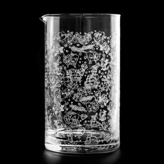 The Tattoo Mixing Glass from Urban Bar has been designed with a pouring spout to allow an easy flow and decreasing spillages. This retro mixing glass also features a tattoo decal, designed to catch the eye at any bar. Perfect for mixing high-end cocktails. Hand wash only.