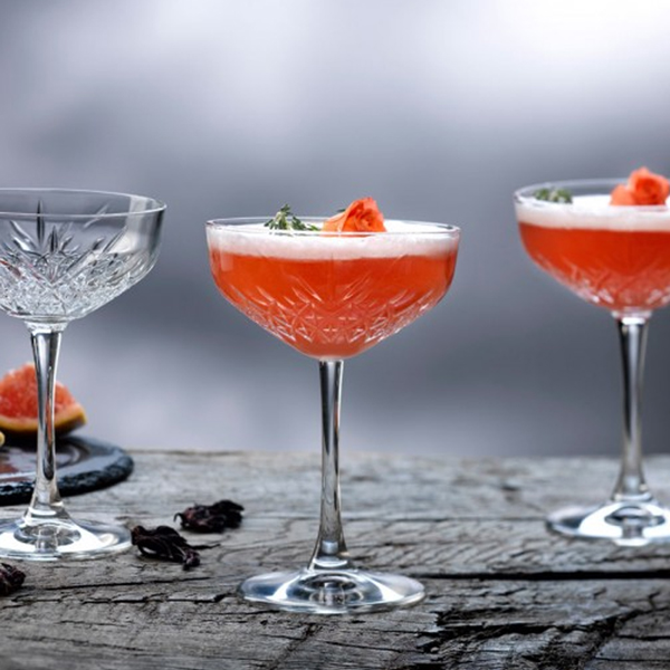 With a stunning vintage inspired design, these Timeless Vintage Coupe Glasses are the perfect way to serve champagne or prosecco. Part of Utopia's Creative Bar collection, these decorative coupe glasses are the perfect way to add texture, and striking design to your current glassware and cocktail service.