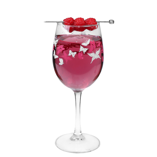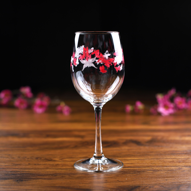 This Tulip Cabernet Glass is the perfect gift for any Wine lover. Made With lead free crystal, these glasses feature red butterfly prints that go around the glass. an elegant stem and large bowl.