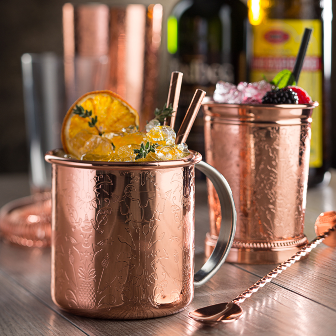 With an etched copper finish these Chased Copper Mugs are ideal for serving a wide variety of cocktails and cold drinks alike. Crafted from a durable stainless steel they are robust enough to endure every day use in even the busiest of commercial bars. Their copper colour provides not only an on trend contemporary aesthetic but also colour, character and variety to your drink presentation and glassware collection.