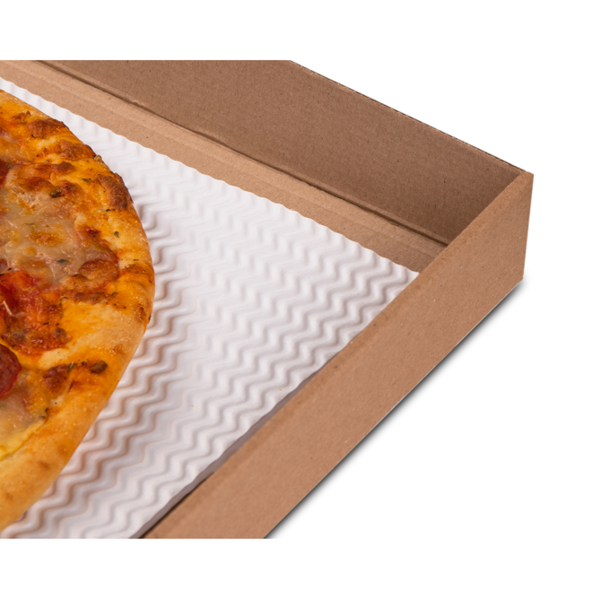 Made to fit Biopak 12" Kraft pizza box, this insert increases airflow to prevent a thin base pizza from becoming soggy.
