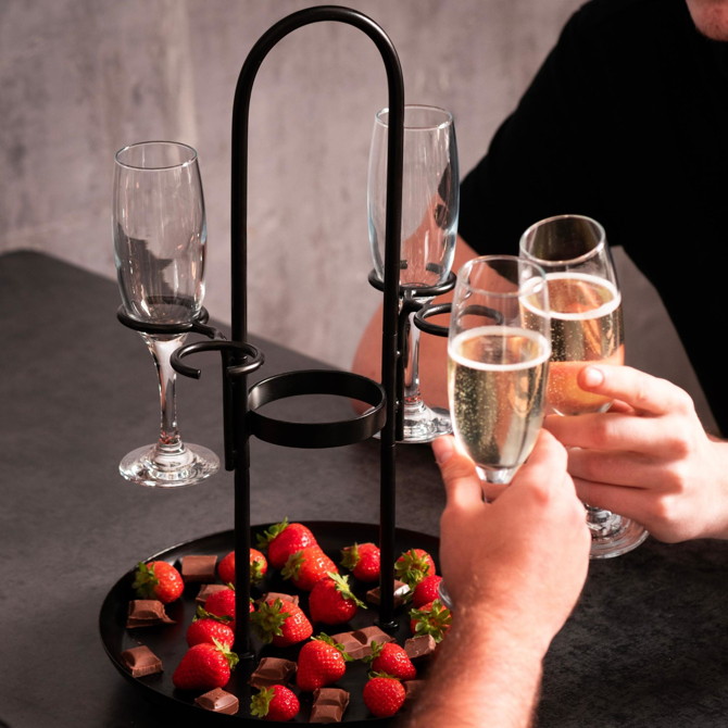 As a truly unique way to serve wine, our Wine Night Stand Tree features 4 Arms along with a holder for a standard 75cl bottle of wine of your choice.