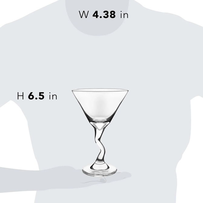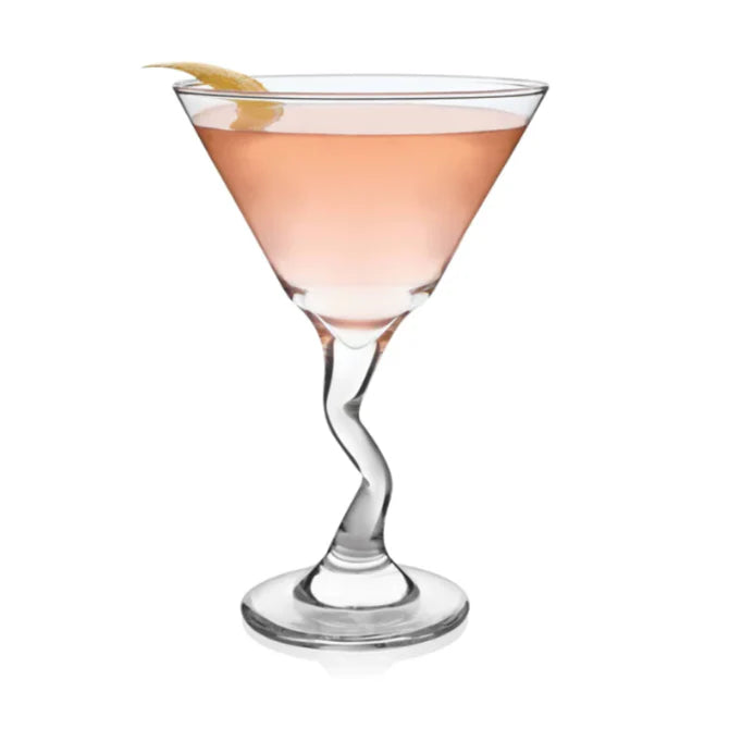 If you like your drinks to have a bit of a twist, then this glass is the perfect vessel for you! Just mix up your favourite cocktail and serve it in this funky clear glass with a curved stem!